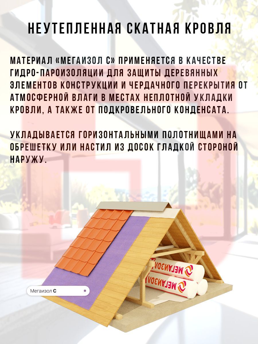 гидро-пароизоляция; МЕГАИЗОЛ С; антиконденсатная пленка; изоляция кровли; пароизоляция чердака; влагозащита утеплителя; строительная пленка; пароизоляция купить; защита утеплителя от влаги; гидроизоляционная мембрана; утепленная кровля; изоляция для стены