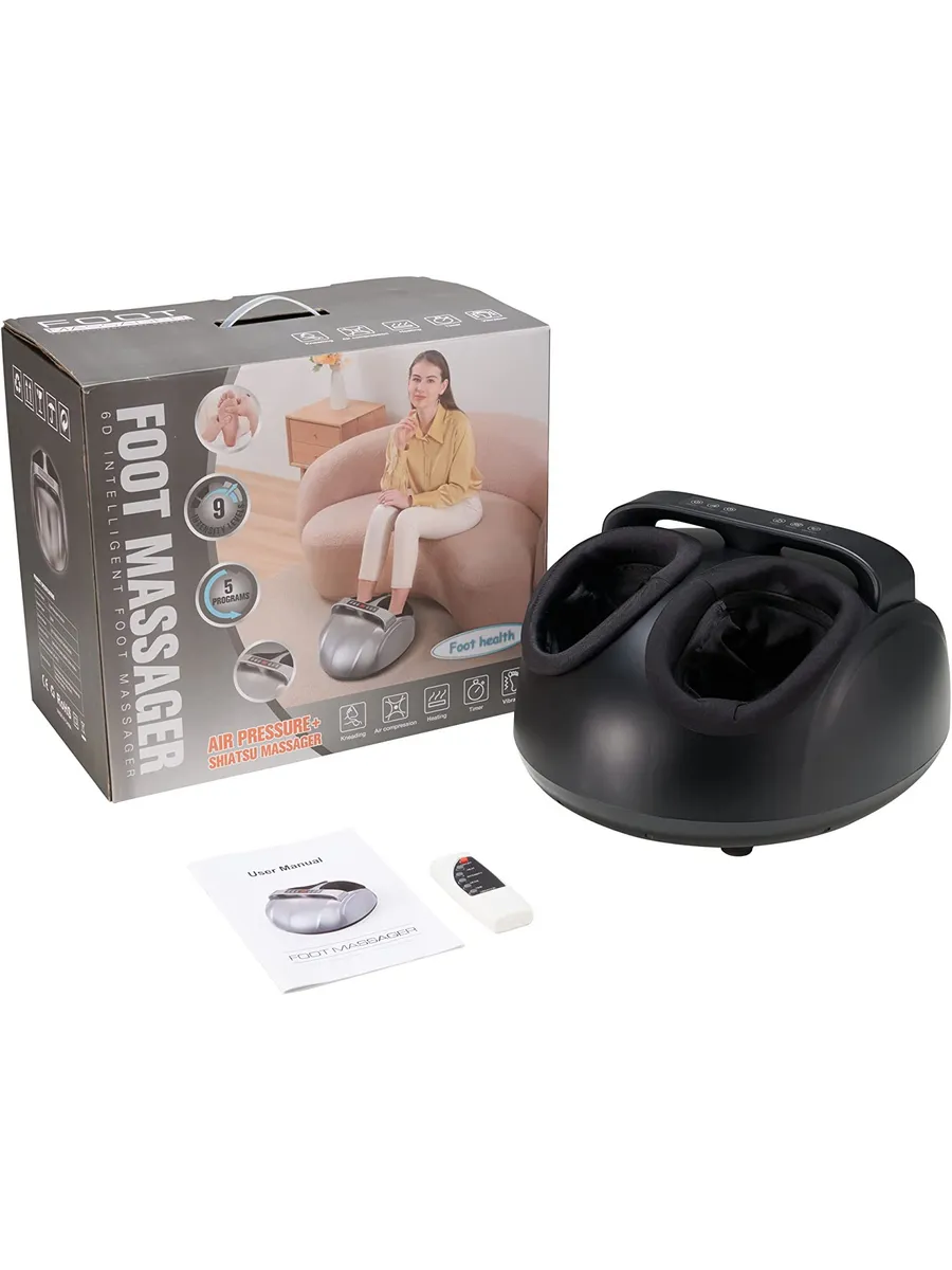 Инструкция на русском языке, пульт управления, сам массажер для ног с глубоким разминанием на 360°.